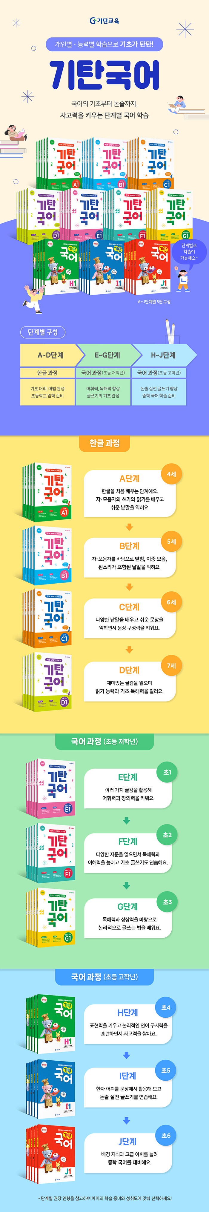 사고력과 창의력을 키워 주는 개인별·능력별 학습 프로그램입니다.기탄국어의 특징● 개인의 학습 능력에 맞춘 학습으로 기초가 탄탄! 교과서 위주의 기본 개념을 묻는 학습 방법에서 탈피하여, 한글과 국어 학습의 기본 원리를 기본으로 하면서도 학습자의 능력에 맞추어 국어 능력이 골고루 향상되도록 편성했습니다.