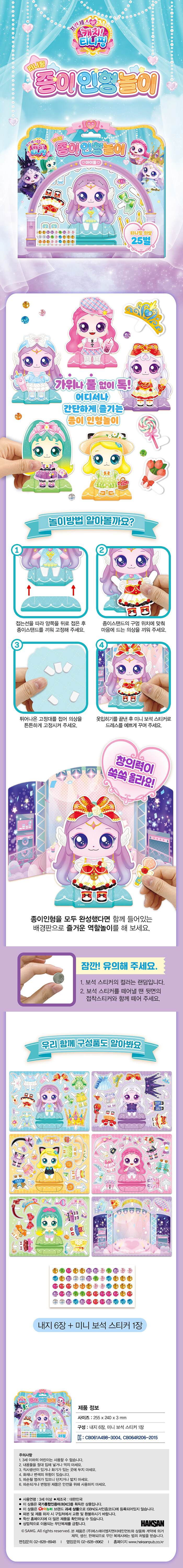 내가 직접 꾸머주는 나만의 티니핑. 블링블링 보석 스티커와 다양한 의상들로 티니핑들을 예쁘게 코디해 보자. 마음에 드는 의상에 보석 스티커를 붙여 예쁘게 꾸민 후 티니핑에 코디해 나만의 인형놀이를 즐길 수 있다. 코디를 완성한 종이인형을 배경판 앞에 세워 멋진 사진을 찍어 주자.