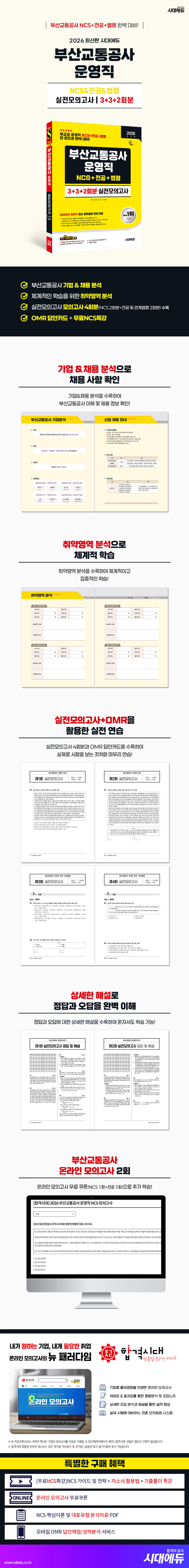 2026 최신판 시대에듀 부산교통공사 운영직 NCS&전공&법령 실전모의고사 3+3+2회분