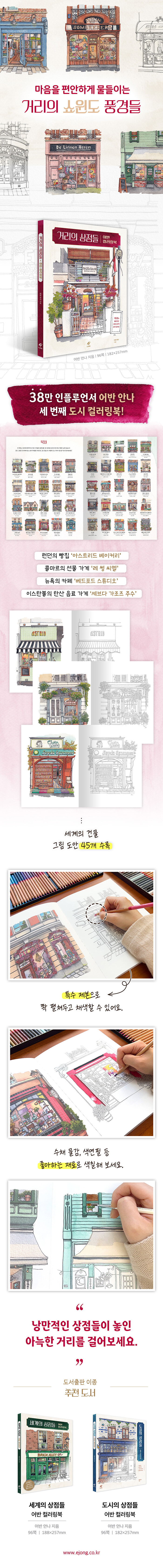 본명은 아스트리드 윌링가(Astrid Wielinga).38만 팔로워가 사랑하는 일러스트레이터이자 수채화가. 2020년부터 수채화를 시작했다. 평범한 일상에 작은 마법을 더하는 일을 자신의 소명으로 생각하며, 세계 곳곳의 도시 속 건축물에서 발견한 아름다움을 그림에 담는다. 카페와 가게의 정면도와 눈길을 사로잡는 파사드를 그리는 것을 좋아하고 자신만의 세계를 수채화로 물들이며 생기를 불어넣고 있다. 네덜란드의 헤이렌베인에서 살며 작업을 이어가고 있다.인스타그램: @urbananna20최근작 : 『세계의 상점들 어반 컬러링북』