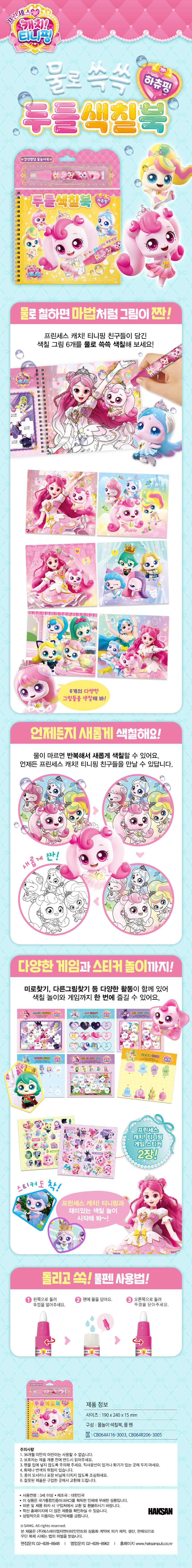내지6장(색칠놀이, 게임구성), 물놀이 펜 1개, 스티커2장