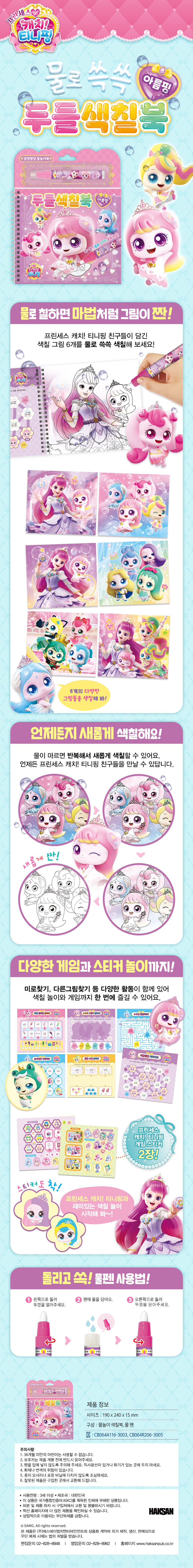 내지6장(색칠놀이, 게임구성), 물놀이 펜 1개, 스티커2장