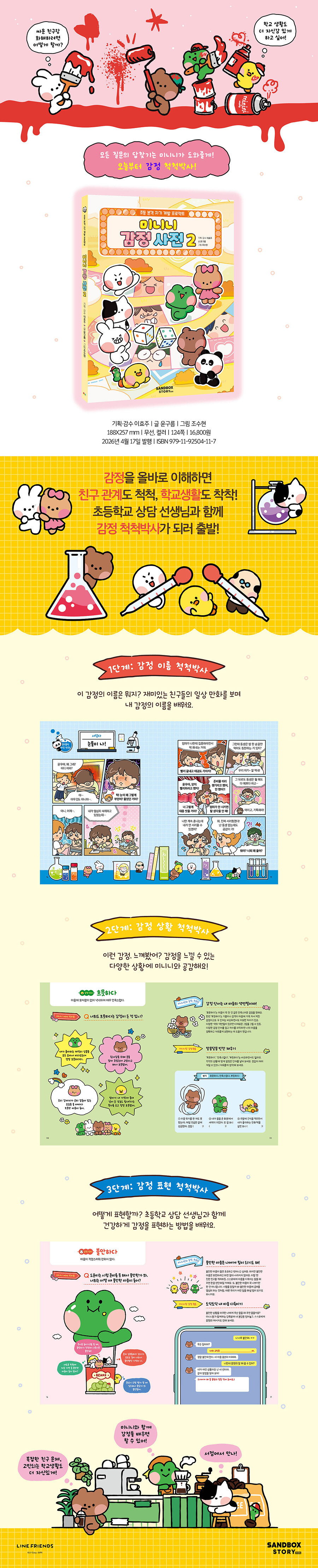 현직 초등학교 상담 교사가 함께 참여해, 만화로 감정을 배우고 상황을 확장해 생각하며 알맞은 표현법까지 익히는 3단계 구성을 담았다. 관계 속에서 자신 있게 표현하는 힘을 기르는 감정 학습서다.