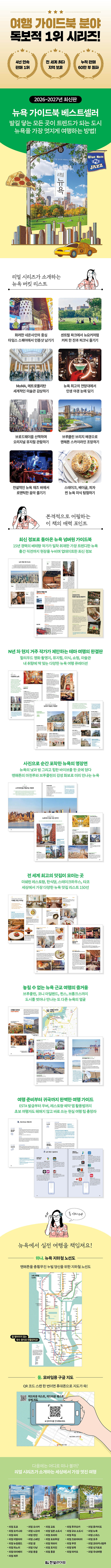 『리얼 뉴욕』 2026년 최신 개정판 출간뉴욕 여행 베스트셀러로 꾸준히 사랑받아 온 『리얼 뉴욕』이 2026년 최신 개정판으로 새롭게 돌아왔다. 세계에서 가장 크고 쉴 틈 없이 변화하는 도시 뉴욕은, 지금 이 순간 그 어느 때보다 역동적인 에너지를 뿜어내고 있다. 2026년 월드컵 개최라는 대형 이벤트부터 다시금 주목받는 호텔 바 문화, 로컬의 일상에 스며드는 동네 몰입형 여행, 그리고 몸과 마음의 조화를 추구하는 소셜 웰니스까지. 현재 뉴욕 여행의 패러다임은 빠르게 진화하고 있다. 처음 뉴욕을 방문하는 여행자라면 어디서부터 어떻게 시작해야 할지 막막할 수 있다. 바로 그때 『리얼 뉴욕』은 가장 든든한 동반자가 되어준다.