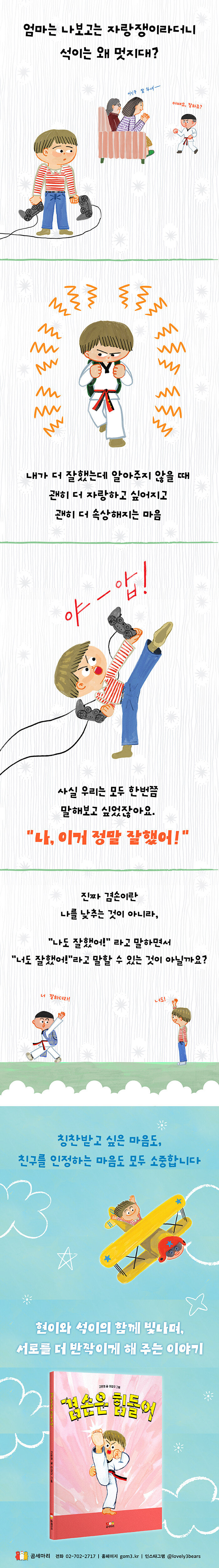 그림책 기획을 합니다. 그림책 글 작가이기도 하고, 그림책 작가를 꿈꾸는 이들을 위해 그림책 강의도 합니다. 사별가족 모임에서 만난 어르신의 이야기를 담은 『사랑하는 당신』이 글 작가로서 처음 쓴 그림책입니다. 겸손이 몸에 밴 조카를 응원하기 위해 두 번째 그림책을 썼습니다. 스스로 해낸 일은 남들과 비교하지 않아도 충분히 자랑스럽고 칭찬받아 마땅합니다. 겸손을 미덕이라고 말하지만, 때로는 자신이 성취한 일에 대해 자부심을 갖길 바랍니다.