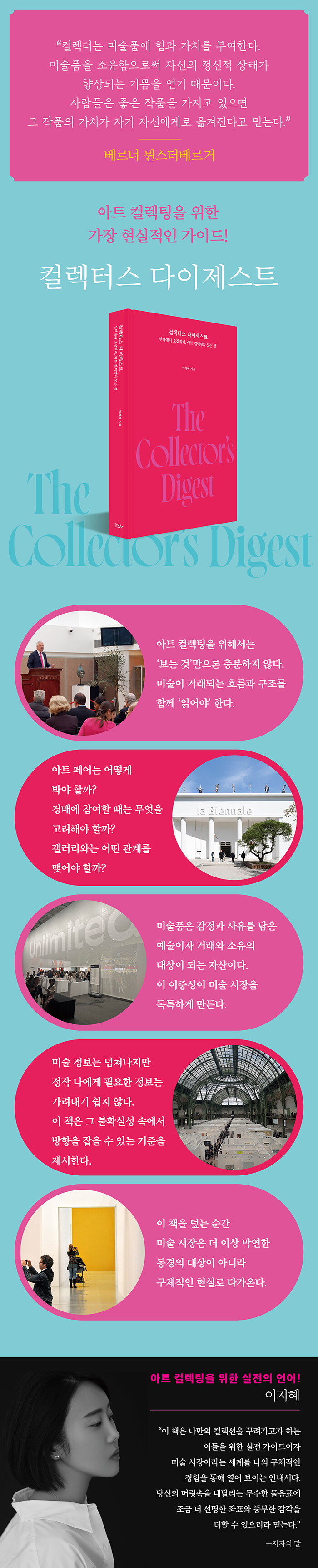 이 책을 읽고 나면 미술 시장은 더 이상 막연한 동경의 대상이 아니라 구체적인 현실 세계로 다가온다. 그리고 그 순간부터 아트 컬렉팅은 특별한 취미가 아니라 자신의 취향과 가치관으로 세계를 읽고 선택하는 방식이 된다.
