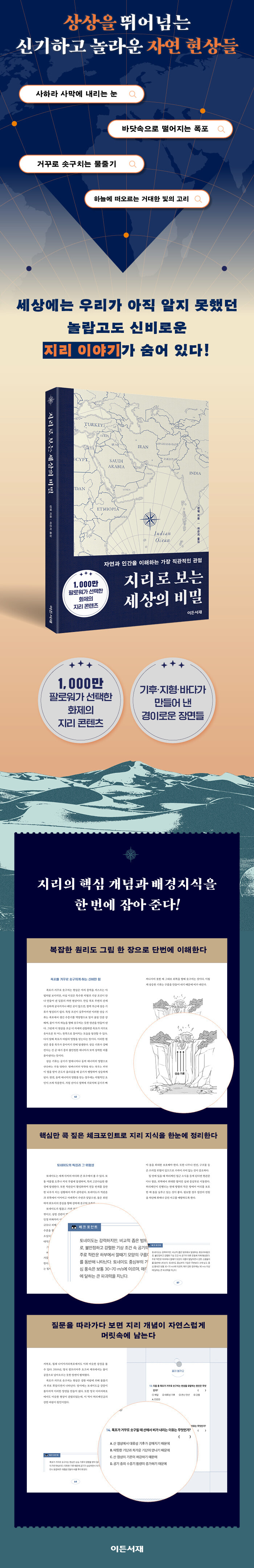 이 책의 마지막 장을 덮는 순간, 익숙했던 세상의 풍경은 전혀 다른 의미로 다가온다. 여행지의 경관 뒤에 숨은 과학적 서사를 읽어 내고, 뉴스 속 기상 이변의 원인을 스스로 해석할 수 있는 ‘지리적 안목’을 갖게 되기 때문이다.