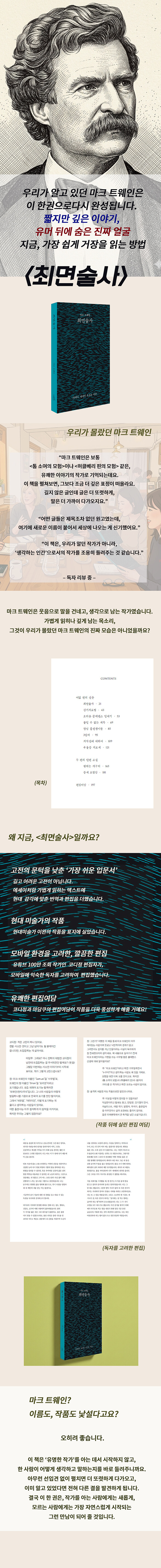 마크 트웨인의 이름은 익숙하지만, 그의 모든 작품이 익숙한 것은 아니다. <최면술사>는 우리가 알고 있던 대표작의 이미지 뒤에 가려져 있던 또 다른 목소리를 들려주기 위해 기획된 책으로, 장편소설이 아닌 단편과 에세이, 자서전 속 글들을 중심으로 구성되었다. 일부는 원래 제목조차 없이 남아 있던 원고였던 터라 새로운 이름이 붙었고 최종적으로 한 권의 책으로 완성되었다.