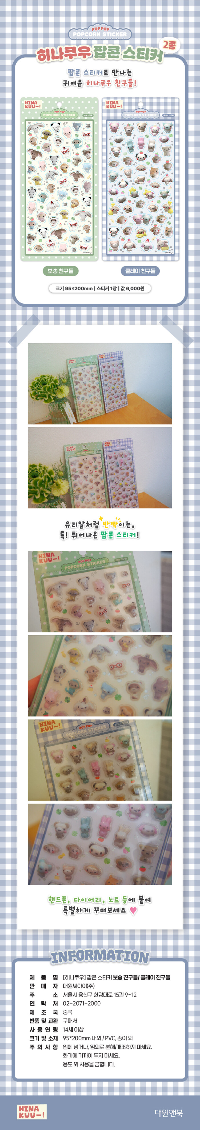 각 캐릭터는 일상 속 작은 행복과 귀여움을 테마로 하며, 스티커, 파우치, 플래너 등 다양한 문구류로 제작되어 꾸준한 사랑을 받고 있습니다.