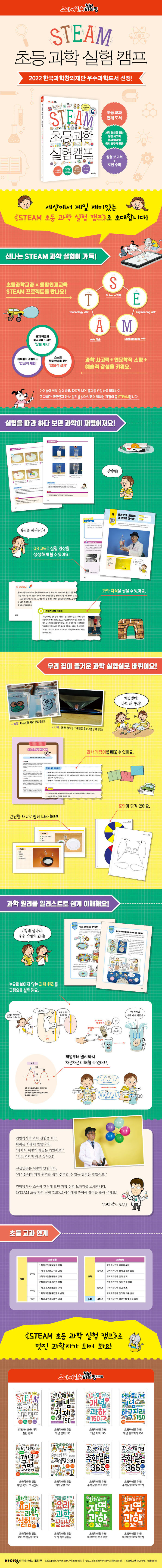 그림이 물속에서 사라지는 마술 실험부터 예술 감각을 뽐내는 사인펜 크로마토그래피 실험, 홀로그램을 직접 만들어 보는 공작 실험까지. 우리 집이 과학 실험실로 바뀌는 실험 아이디어가 가득하다. 재밌고 놀라운 과학 실험을 따라 하다 보면 과학 개념이 머릿속에 쏙쏙 들어올 것이다. 어려운 과학 원리는 일러스트로 설명해 쉽게 이해할 수 있다. 원리가 보이고 개념이 잡히는 신나는 과학 탐구활동 교과서 <STEAM 초등 과학 실험 캠프>로 초대한다.