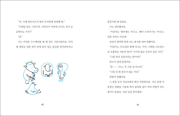“엄마, 이건 뭐야? 왜? 그래서? 그건 어디에 쓰는데?” 아이들이 엄마에게 하는 단골 질문이지요. 도시에 살지만 주말마다 엄마 아빠를 따라 시골에 가는 이 책의 주인공 레오나르는 어느 날 숲 속에서 양 한 마리와 마주칩니다. 그런데 그 양이 난생 처음 들어 보는 질문을 하지요. “그런데 너는 뭐니? 어디에 써?” 하고요. 만날 자신이 엄마 아빠에게 하던 질문을 다른 사람이, 그것도 말을 못하는 줄로만 알았던 양이 한 거예요. 그때부터 레오나르의 심오한 고민이 시작됩니다. 나는 병따개도 아니고, 이불도 아니고, 텔레비전도 아닌데……. 나는 대체 어디에 쓰는 거야!