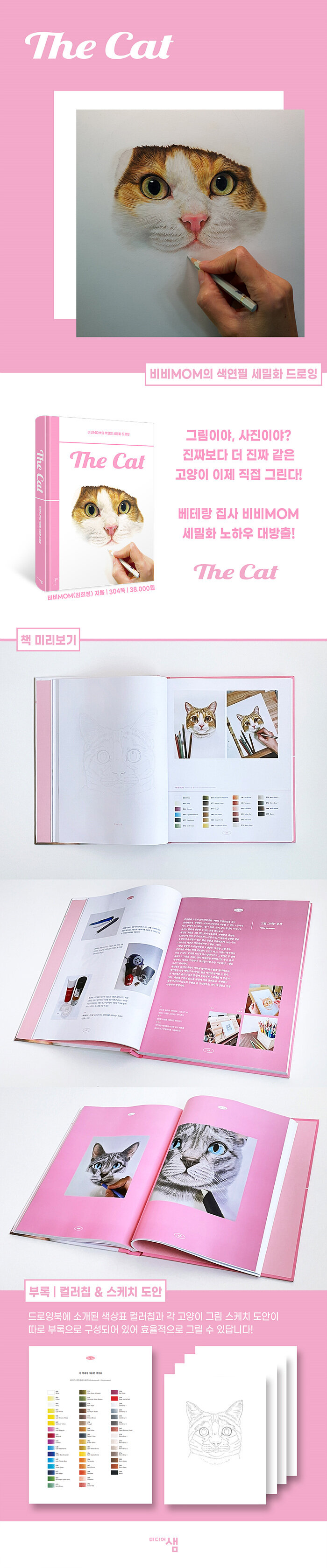 세밀화란 세밀한 묘법으로 제작된 그림을 말한다. 디테일한 표현에 집중하기 때문인지 세밀화는 전문가가 아니면 그릴 수 없을 것이라는 인식을 주곤 한다. 그러나 비비MOM 작가는 《더 캣(The Cat)》을 통해 자신의 그림을 보는 것을 넘어 입문자도 쉽게 따라 그릴 수 있는 전문 세밀화 드로잉 비법을 공개한다.