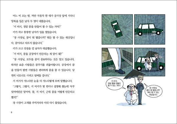 “장 사장님, 모두들 꿈이 중요하다는 것은 알고 있습니다. 하지만 요즘 사람들은 꿈꾸기를 귀찮아합니다. 공장에서 꿈을 만들어 팔면 사람들은 편리하게 꿈을 꿀 수 있습니다. 당연히 너도나도 사려고 덤벼들 겁니다.”