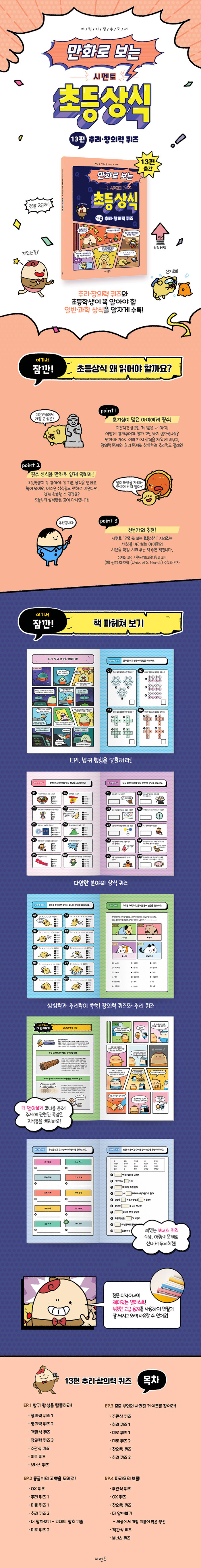 또한 앞서 배운 상식들을 확인하는 다채로운 퀴즈가 수록되어 있습니다. 학습한 내용을 한 번 더 확인하는 시간을 가짐으로써, 상식을 더욱 오래도록 정확하게 기억할 수 있습니다.