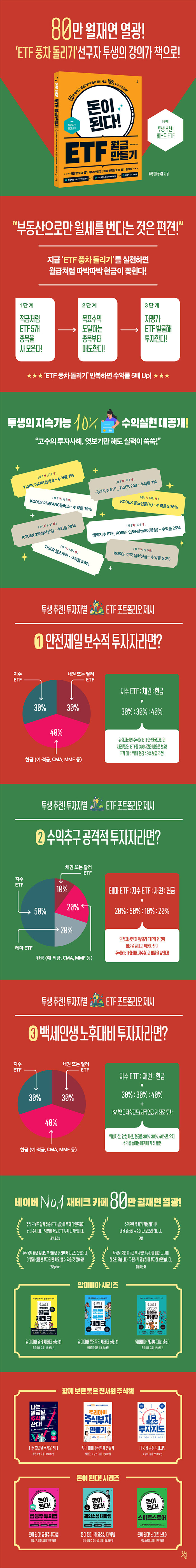 이메일 kateopera@naver.com블로그 blog.naver.com/kateopera투자는 일상생활처럼 익숙해지고 습관이 되어야 지속할 수 있다고 믿는월급쟁이. 30대 초 주식투자로 전 재산을 날린 후 예·적금 위주로 종잣돈을 모으다 더 이상 투자하지 않고서는 안정적인 은퇴생활이 어렵겠다는 절박함으로 ETF를 파고들기 시작했다.하지만 막상 시작하려고 보니 금융 전문가는 많아도 ETF 전문가는 찾을수 없었다. 그래서 독학으로 공부했고 소액으로 연습투자를 시작하며투자 결과를 ‘월급쟁이 재테크 연구소(월재연)’ 카페에 올리기 시작했다.‘적금 풍차 돌리기’에 익숙했던 회원들은 3배 이상의 수익을 거두는‘ETF 풍차 돌리기’에 열광했고 ‘ETF로 월세 수익 버는 비법’ 칼럼은 높은 조회수를 찍었다. 주식투자를 하기엔 순발력이 떨어지고 부동산투자를 하기엔 자본금이 부족한 사람들에게 ETF 투자가 새로운 희망을 준것이다. 보수적 투자자, 공격적 투자자, 노후대비 투자자를 위한 ‘투생포트폴리오’는 지금도 초보자들의 투자 나침반으로 활용되고 있다.뿐만 아니라 초보자도 쉽게 볼 수 있는 ETF 실전 투자서를 만들기 위해저자가 투자했던 ETF 수익 결과를 고스란히 담았다. 이 기록을 엿보는것만으로도 큰 도움이 될 것이다.