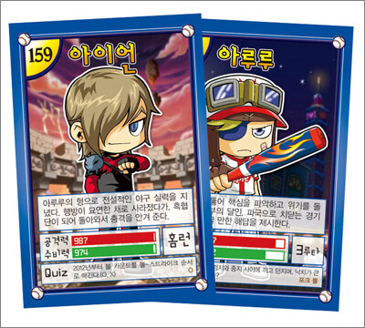 카드마다 간단한 야구 퀴즈가 있어
