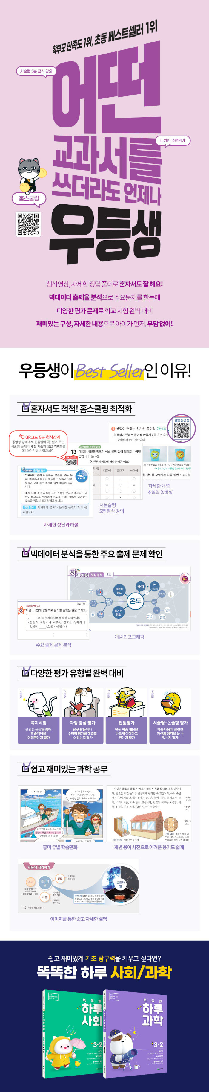 교과연계 과학 추천 도서 목록을 수록하였으며, QR 코드로 재미있게 공부하고 선생님의 꼼꼼한 첨삭 지도와 자세한 채점 기준 정답 키워드를 제시하며, 중간고사, 기말고사뿐 아니라 수행평가, 서술형 및 논술형 평가에도 대비할 수 있다.