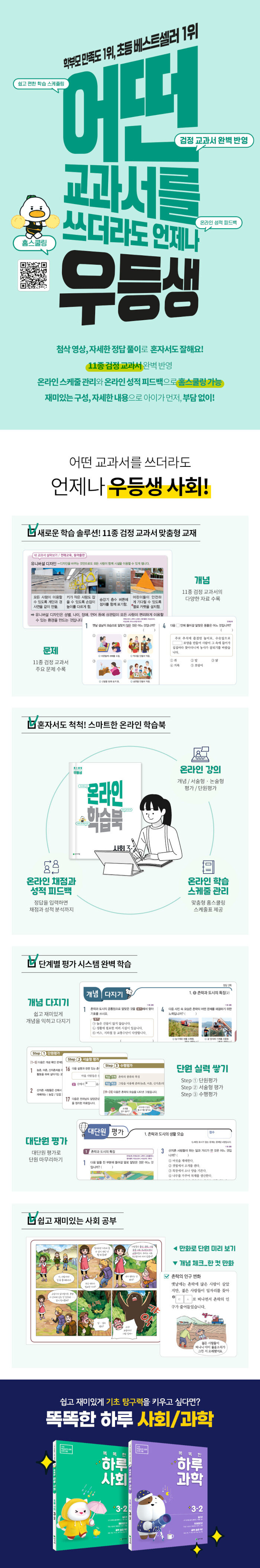 ※ 우등생 사회 3,4학년 교재 내용 중 〈진도북〉 부분은 『리더』 시리즈 교재의 〈개념북〉 과 동일한 내용입니다. 고객님께서는 해당 내용 참고 부탁드립니다.
