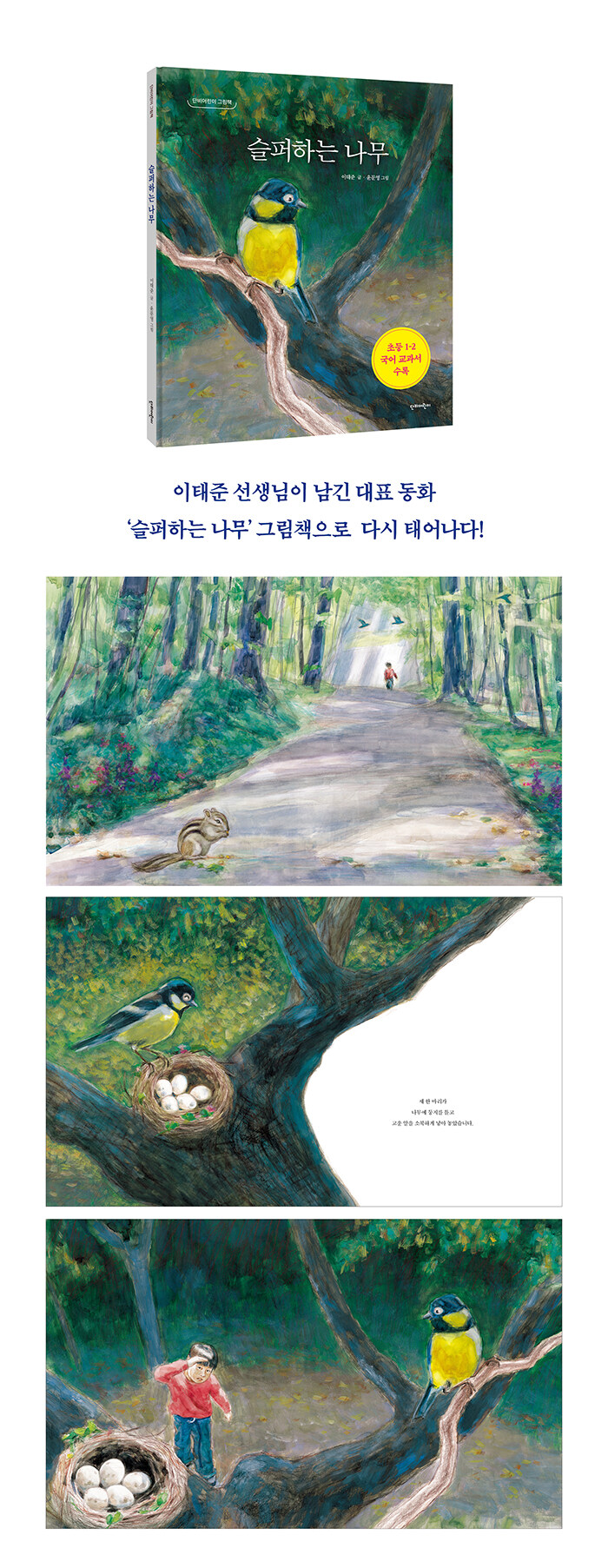 우리나라를 대표하는 작가 이태준 선생님의 동화를 그림책으로 풀어낸 책이다. 그림책 속 아이는 우연히 새 둥지를 발견하고, 그 안에 있는 새알을 보게 된다. 아이는 그저 바라보는 것만으로는 부족한지 새알을 집으로 가져가려고 한다. 결국 아이의 이런 욕심은 나무를 슬픔에 빠뜨리는 결과를 낳게 된다.