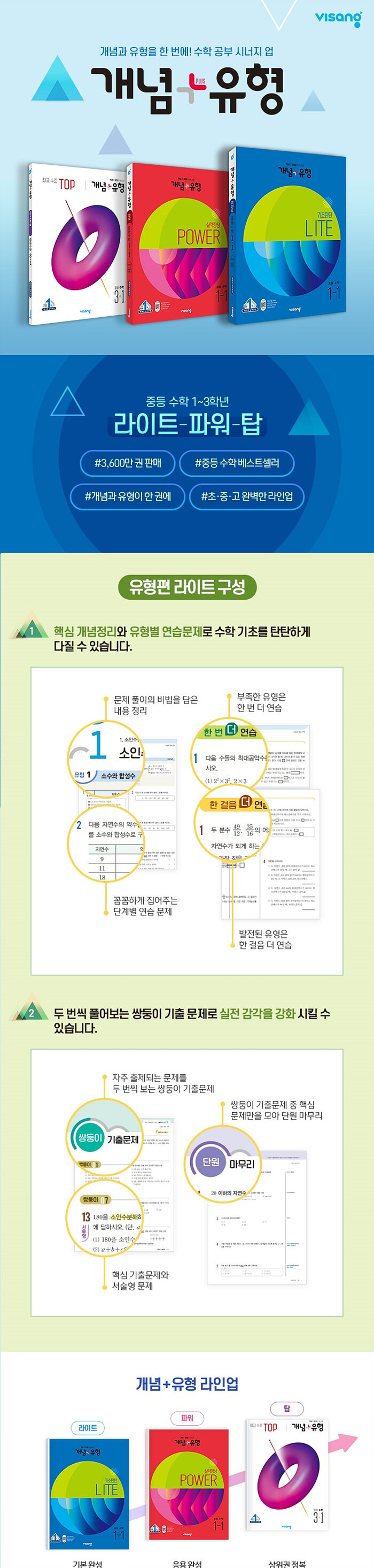핵심 유형을 반복적으로 연습할 수 있는 '유형편 라이트'로 이루어진 수학 내신 기본서. 기본 개념의 핵심을 다시 한 번 확인하고 기초적인 문제들을 연습한다. 계산력 등 기초 강화를 위한 특별 코너들로 기초를 다질 수 있다. 자주 출제되는 문제들을 두 번씩 반복하여 공부할 수 있는 쌍둥이 기출문제를 수록하였다.