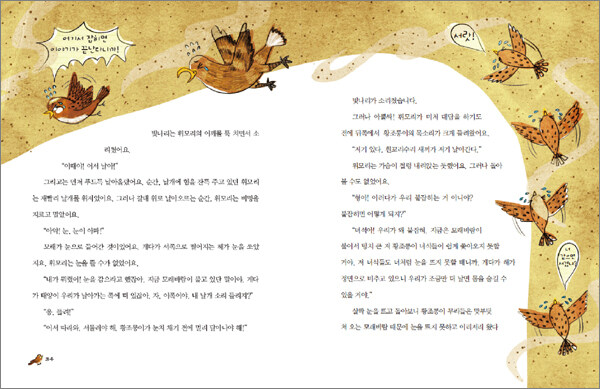 대머리 참새와 새끼 흰꼬리수리의 파란만장 모험담날개를 다쳐서 엄마를 따라가지 못한 새끼 흰꼬리수리는 머리가 벗겨진 대머리 참새의 도움으로 엄마를 찾아 북쪽으로 떠난다. 하지만 여행은 순조롭지 않다. 솔개의 습격을 받기도 하고, 나쁜 황조롱이의 모함에 빠지기도 한다. 무서운 태풍과 모래바람, 천둥 번개까지 그들을 위협한다. 새끼 흰꼬리수리는 이런 위험을 헤치고 엄마를 찾아 북쪽으로 날아갈 수 있을까? 이들의 모험 길에 함께 따라나서 보자. 흥미진진한 모험담은 물론 바람이 왜 부는지, 태풍은 어떻게 생겨나는지, 우리가 꼭 알아야 할 날씨 이야기까지 들을 수 있다.