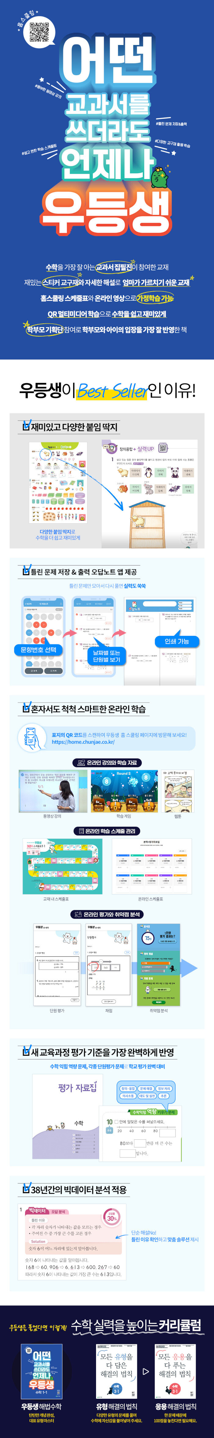 홈스쿨링 학습 우등생 해법수학 현 교육시장에서의 경험과 노하우로 30여년 간의 초등 필수 교재로 자리 잡아온 우등생 해법수학이 <홈스쿨링 우등생 수학>으로 새롭게 태어났어요.