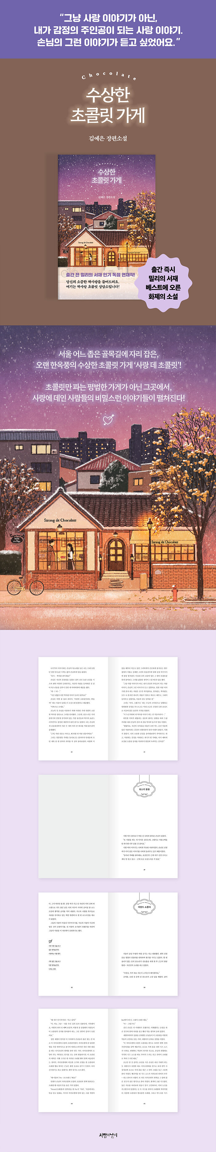 우리는 흔히 이 같은 마음속 아픔을 간직하고 있는 사람이라면 같은 아픔을 겪었던 똑같은 사람과 이에 대한 진심 어린 대화를 나눔으로써 극복할 수 있다고들 말한다. 그런 의미에서 신인 소설가 김예은 작가가 올해 쓴 이 소설 《수상한 초콜릿 가게》는 독자들의 짝사랑에 대한 추억을 아름답게 상기시킴과 동시에 지금도 어딘가에서 어떤 사람을 향한 짝사랑으로 아파하고 있는 독자들의 마음에 깊은 반향을 일으킴으로써 작중 인물들과 함께 사랑의 고통을 치유하고자 하는 아름다운 공감소설이라 할 수 있다.