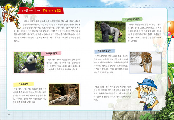 또한, 사육사, 조련사, 동물 영양사, 수의사, 동물원 큐레이터 등 사파리에서 만날 수 있는 주요 직업 7가지에 대한 정보와 실제 직업인들의 인터뷰를 바탕으로 한 직업의 장단점, 보람 있는 점 등의 다양한 정보를 제공한다. 어린이들은 이 책을 읽으며 직업에 대한 올바른 인식은 물론 직업에 대한 구체적이고 실제적인 정보 또한 얻을 수 있을 것이다.