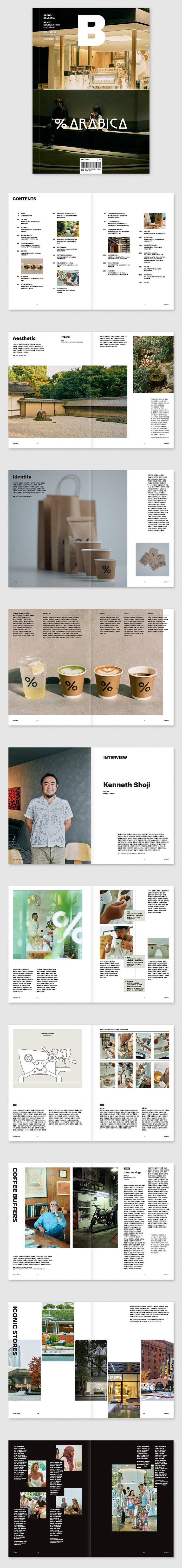 매거진《B》가 인텔리젠시아, 블루보틀 커피에 이어 소개하는 % 아라비카 % Arabica(이하 아라비카)는 그 차이를 즐기는 시대에 어울리는 커피 브랜드입니다. 2022년 10년 차를 맞은 이 일본발 브랜드는 프랜차이즈 형태로 매장을 전개하면서 동시에 스페셜티 커피의 DNA를 일부 흡수하는 방식을 택합니다. 40대의 나이에 브랜드를 창립한 케네스 쇼지 Kenneth Shoji 역시 여러 인터뷰에서 20대 시절 스타벅스로부터 많은 영향을 받았다고 밝힌 바 있습니다. 그뿐 아니라 인텔리젠시아나 블루보틀 커피가 카페 공간과 커피 기구를 다루는 방식에서도 영감을 얻었음을 스스럼없이 이야기합니다. 하지만 아라비카를 그들의 카피캣이라 부를 수는 없습니다. 브랜드의 본거지나 다름없는 도시 교토의 미학을 공간에 이식하는 방식, 고유의 메뉴 구성, 매장이 들어설 입지와 시기까지 아라비카는 브랜드의 독창성을 구축하는 일을 무엇보다 섬세하게 다뤄왔으니까요.