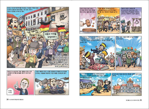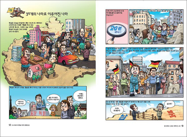 34 비스마르크와 독일 제국의 흥망성쇠1800년대 후반, 독일은 여러 개의 군소 국가들이 모여 복잡한 체제를 이루고 있었다. 비스마르크는 이러한 독일을 통일 제국으로 이끌고 강대국으로 발전시키는 데 중요한 역할을 했던 사람이다. 그는 명분보다는 실제적인 이익을 선택하는 등 뛰어난 외교력을 발휘해 여러 강대국 사이에서 놀랄 만큼 빠른 속도로 독일의 힘을 키워 냈다. 독일 제국의 통일은 독일이 전 세계의 강대국 중 하나로 발전하는 계기가 되었다. 그리고 독일 제국의 발전은 오늘날 세계 역사에 큰 영향을 미치는 결과를 가져 왔다. 이러한 맥락에서 독일의 통일 과정을 아는 것은 오늘날의 독일을 이해하는 것뿐만 아니라, 세계 역사의 전개 과정을 이해하는 데 있어서도 매우 중요한 일이다. 이 책은 독일 통일의 중심에 있던 비스마르크의 활약과 독일 제국의 탄생과 발전, 그리고 몰락까지의 과정을 재미있는 만화로 엮어, 보다 흥미롭고 쉽게 역사의 현장으로 들어가 볼 수 있을 것이다.