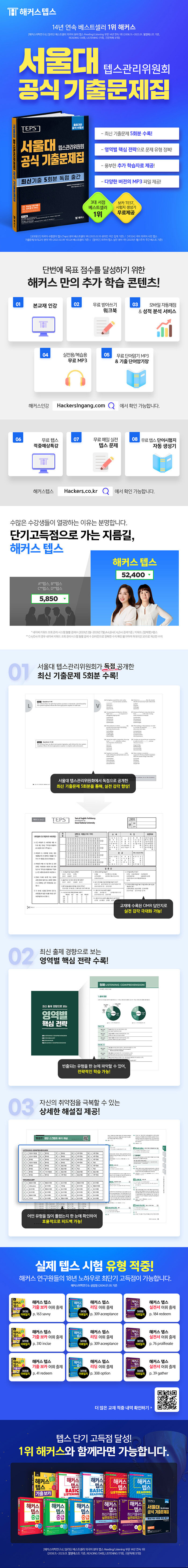 [해커스 교재만의 특장점]1. 서울대 텝스관리위원회에서 독점으로 공개한 최신 기출문제 5회분을 통해 텝스 실전 감각을 익힐 수 있습니다.