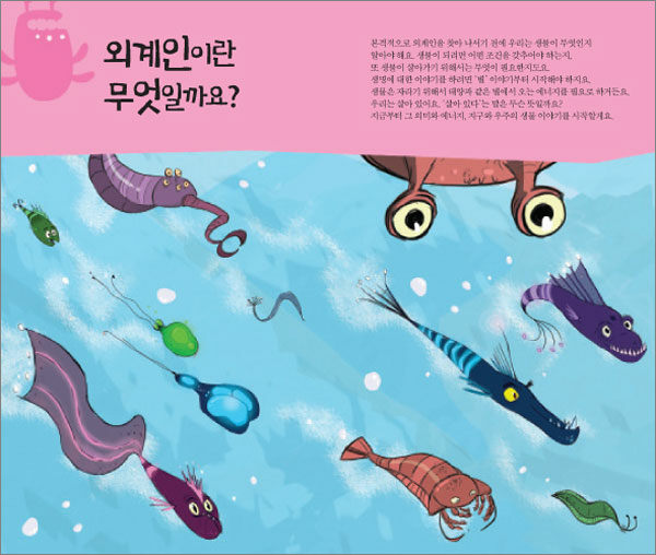 책 속에는 외계인을 찾기 위해 가장 먼저 알아야 할 사항인 생명의 탄생과 진화, 잘 알려진 목성이나 화성 같은 행성뿐 아니라 뜨거운 목성, 슈퍼지구, 행성X와 같은 신기한 행성 이야기까지, 흥미로운 내용들이 가득합니다. 이를 통해 아이들은 새로운 시선으로 우주 과학을 배우게 되지요.