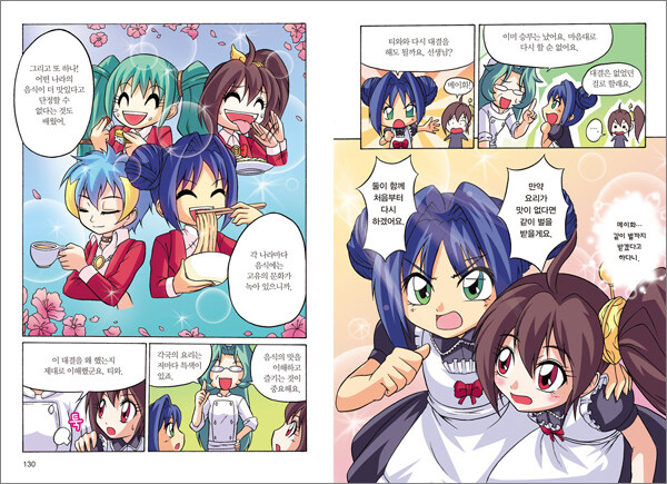 티와와 메이화는 낯선 요리의 이름도, 재료도, 만드는 방법도 잘 몰라요. 메이화는 고기를 잡으러 갔다가 물에 빠지고, 티와는 라면을 만들다가 반죽이 온몸에 감기기도 하지요. 게다가 심술궂은 나르시사가 방해하기까지 해요. 하지만 둘은 친구들의 도움을 받아 차근차근 요리를 완성해 갑니다.