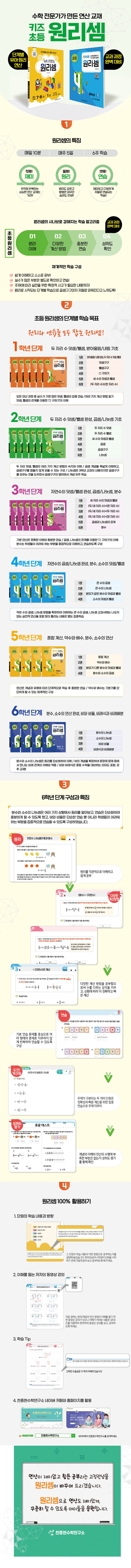 개정판 원리셈은동영상 강의 확대/초등 고학년 원리 학습 과정 강화 등으로 원리와 개념, 계산 방법을 더 쉽게 이해할 수 있도록 하고, 연습을 강화하여 학습의 완성도를 더했습니다.