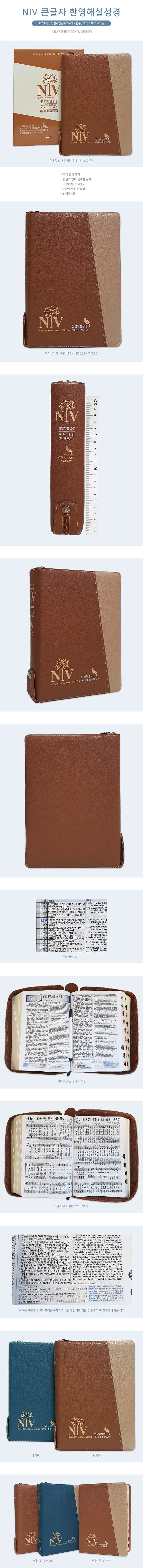 휴대용 최대 판형인 특대 사이즈 신간!한 권에 개역개정, NIV성경책 2권이 들어있지만, 편집기술을 통해 최대한 글자크기를 키웠습니다. 2011년판 개정(Updated) NIV 성경을 삽입했습니다. 한글과 영어 절대절 간격을 일치시켰고, 영어를 읽다가 어려운 구문해설, 단어풀이를 통해 영어사전이 없이도 읽을 수 있습니다. 한글성경에는 필요한 절마다 관주를 삽입했고, 페이지마다 난하주를 삽입하여 인용 출처 등을 각주로 표기했습니다.