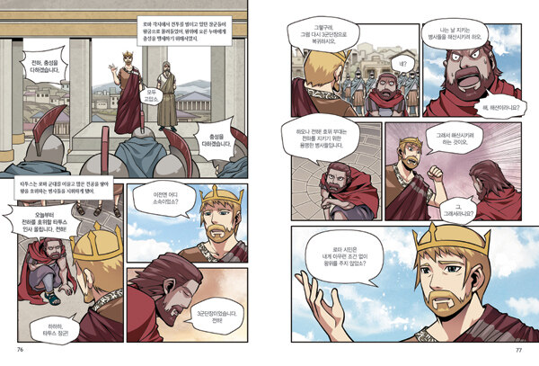 <플루타르크 영웅전> 권위자인 강대진 박사의 꼼꼼한 감수로 내용의 정확성도 더했다. 이를 통해 아이들은 자연스럽게 상상력과 논리적 사고력을 키우는 한편, 논술을 위한 역사 상식도 익힐 수 있다. 또한 로마 편을 그린 문성호 작가는 박진감 넘치는 그림체로 그리스 편과는 또 다른 완성도를 보여 주며 학습만화의 몰입도를 높여 준다.