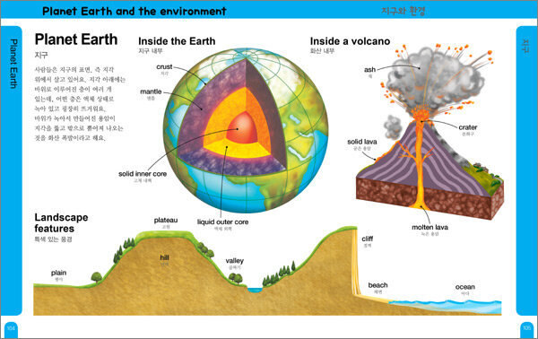 단어와 관련된 정보를 함께 알 수 있어요. 예를 들어 수성, 화성, 지구 등을 같은 비율로 축소해 태양계 행성의 크기와 구조를 한번에 볼 수 있도록 했고, 도르래와 지렛대, 축바퀴를 통해 밀거나 당기는 힘을 이해할 수 있도록 구성했어요. 단순히 단어를 익히는 것을 넘어서 관련 지식까지 넓힐 수 있어요.