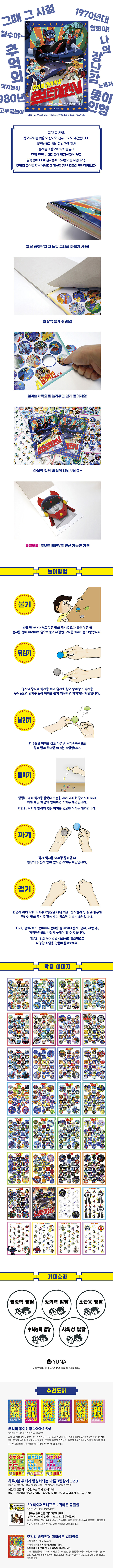 그때 그 시절, 종이딱지는 많은 어린이의 친구가 되어 주었다. 동전을 들고 동네 문방구에 가서 설레는 마음으로 딱지를 골라, 한장 한장 손으로 뜯어 딱지상자에 넣고 골목길에 나가 친구들과 딱지놀이를 하던 추억. 추억의 종이딱지는 아날로그 감성을 지닌 최고의 장난감이다. 이 책에는 로보트봇 태권브이 종이딱지가 768장 담겨있다.
