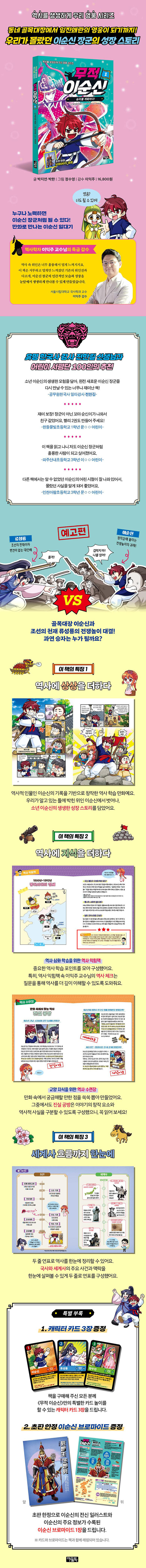 역사에 상상을 더하다!《무적 이순신》은 역사적 인물인 이순신의 기록을 기반으로 창작한 역사 만화예요. 우리가 알고 있는 틀에 박힌 위인 이순신에게서 벗어나, 소년 이순신의 생생한 성장 스토리를 담았어요.