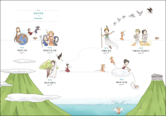 만화와 소설을 합성한 하이브리드 형식의 새로운 그리스 로마 신화 책이다. 1권은 세상이 생겨나고 신들이 태어나 신화 세계를 구성하는 그리스 로마 신화의 초기 이야기들을 담고 있다. 신화의 복잡한 이야기 구조를 만화를 이용하여 이해하기 쉽게 정보디자인 방식으로 전개한 새로운 형식의 북 인터페이스를 제공한다.