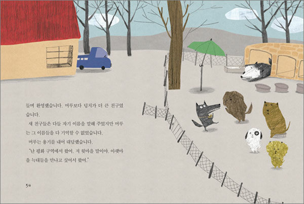 “나처럼 생긴 늑대 말이야. 우리 엄마랑 아빠는 나와 비슷하게 생겼었는데 너희는 다 다르게 생겼네.”