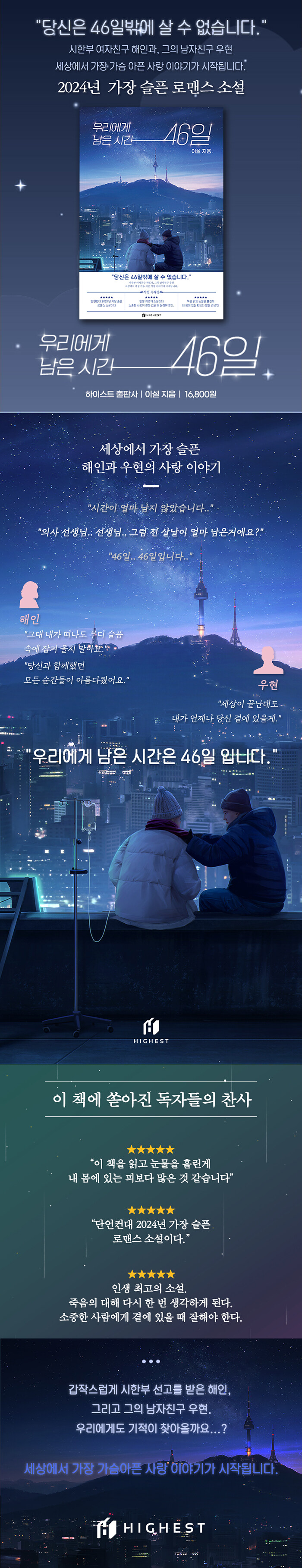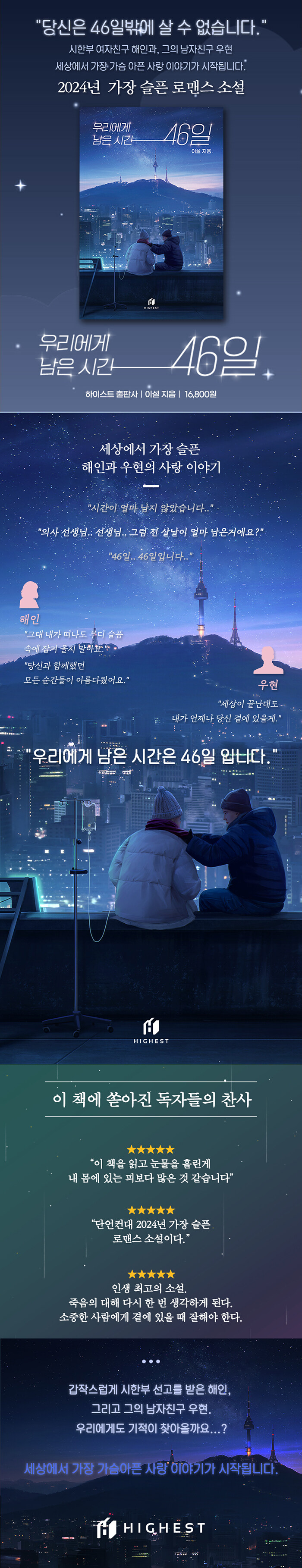 사람을 관찰하며 사랑을 믿는 사람.지나가는 연인의 뒷모습을 볼 때면저 둘은 어떤 이야기로 사랑이 시작됐을까?고민하게 되는 그런 호기심 많은 사람.‘우리에게 남은 시간 46일’이 책이 첫 데뷔작이다.