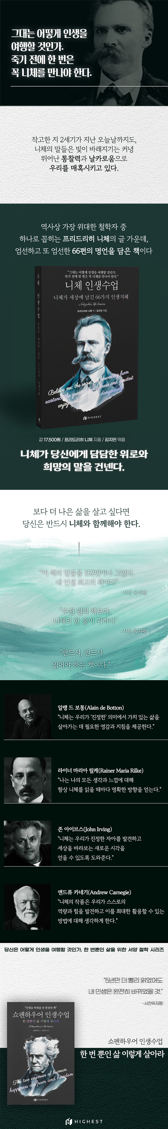 독일의 철학자이자 문학가!목사의 아들로 태어났으며, 아버지와 형제가 일찍 사망한 후 줄곧 어머니, 누이, 이모와 함께 살았다.어릴 때부터 뛰어난 학생이었던 그는 고전 언어학에서 탁월한 재능을 보이며, 젊은 나이에 바젤 대학교의 고전학 교수가 된다. 하지만 건강 문제로 34세의 나이에 조기 은퇴해야 했고, 이후 10년 동안 편두통과 우울증 등의 병마와 싸우다 1900년 바이마르에서 쓸쓸히 생을 마감했다.그의 작품은 인간의 심리, 도덕, 종교, 문화 등에 대한 비판과 탐구를 담고 있으며, 실존주의, 포스트모더니즘 등 다양한 철학적 주제의 기초를 마련했다.그는 서구의 전통을 깨고 새로운 가치를 세우고자 했기 때문에 ‘망치를 든 철학자’란 별명이 붙었으며, 그가 가진 현대의 철학과 문학에 대한 막대한 영향력은 그를 ‘현대철학의 아버지’로 불리게 했다.특히 그의 삶과 작품에 녹아있는 면밀한 내면 관찰은 아들러 등 현대 심리학자들에게도 영향을 미쳤는데, 이에 오늘날 심리학에서도 재평가되기 시작했다.주요 작품으로는 『차라투스트라는 이렇게 말했다』 『즐거운 학문』 『인간적인 너무나 인간적인』 등이 있다.