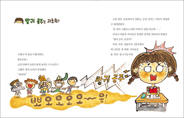 몸에서 나오는 것은 모두 싫다던 ‘방귀 공주’ 진주는 ‘방귀 스타’ 귀수를 통해, 똥과 방귀에 대해 거부감보다는 호기심을 느끼게 된다. 또 ‘기피 인물 3종 세트’ 친구들과 이야기하며, 콧물, 침, 땀도 몸 밖으로 나와야 하는 이유가 있음을 이해하게 된다.