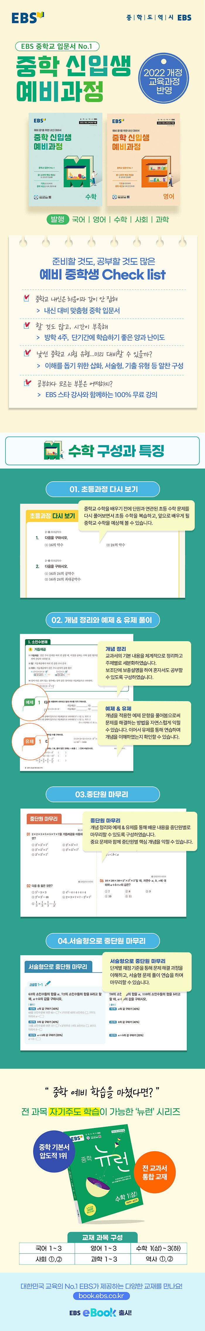 중학교 입학 전, 교과 핵심 개념을 단숨에 익히고 중1 기초를 탄탄하게!