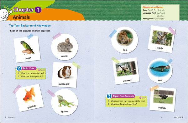 _ 스토리를 읽기에 앞서 학습자들이 이미 배웠거나 실생활에서 쉽게 접하여 알고 있는 친숙한 어휘들을 이용하여 주어진 토픽에 대해 이야기해 봄으로써 리딩에 대한 흥미를 얻고 배경 지식을 확보.