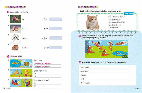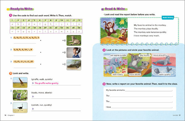 _ 단어 스펠링 학습, 문장 구성 연습, 본책의 스토리에 대한 리뷰 코너로 구성.