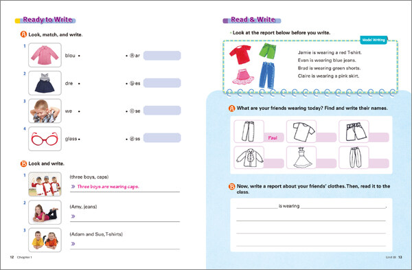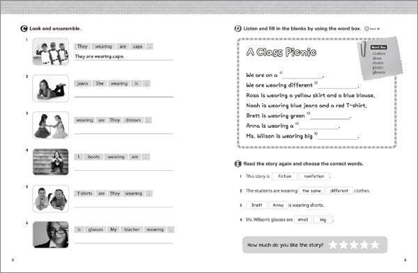 _ 단어 스펠링 학습, 문장 구성 연습, 본책의 스토리에 대한 리뷰 코너로 구성.
