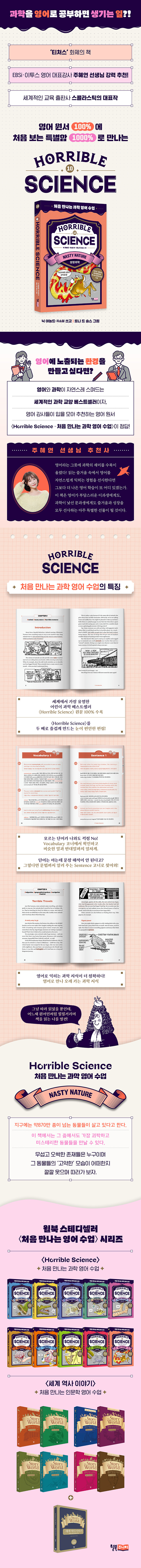 30개국 전 세계 어린이들에게 열광적 반응을 얻은 초대형 과학 베스트셀러 〈Horrible Science〉. 필수 과학 지식을 쉬운 영어와 유머러스한 문체로 담은 책으로, 영미권 학생들의 필독서이자 한국에서는 최고의 영어 교육가들이 입을 모아 추천하는 원서로 명성이 드높다.