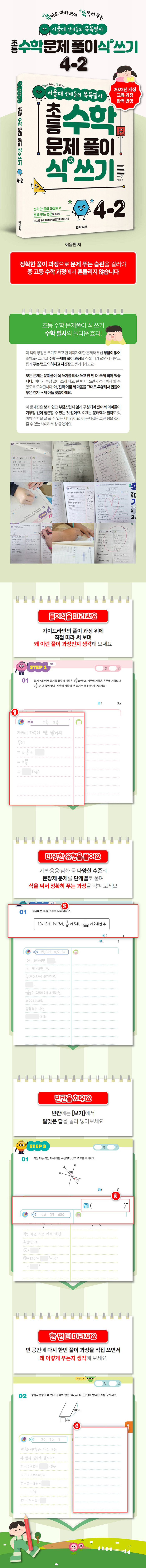 3. 문장제 분석력 강화: 문장제 유형으로 구성하여 문제를 읽고 분석하는 힘도 기르고, 단계별로 식을 써서 정확히 푸는 과정을 익힐 수 있습니다.